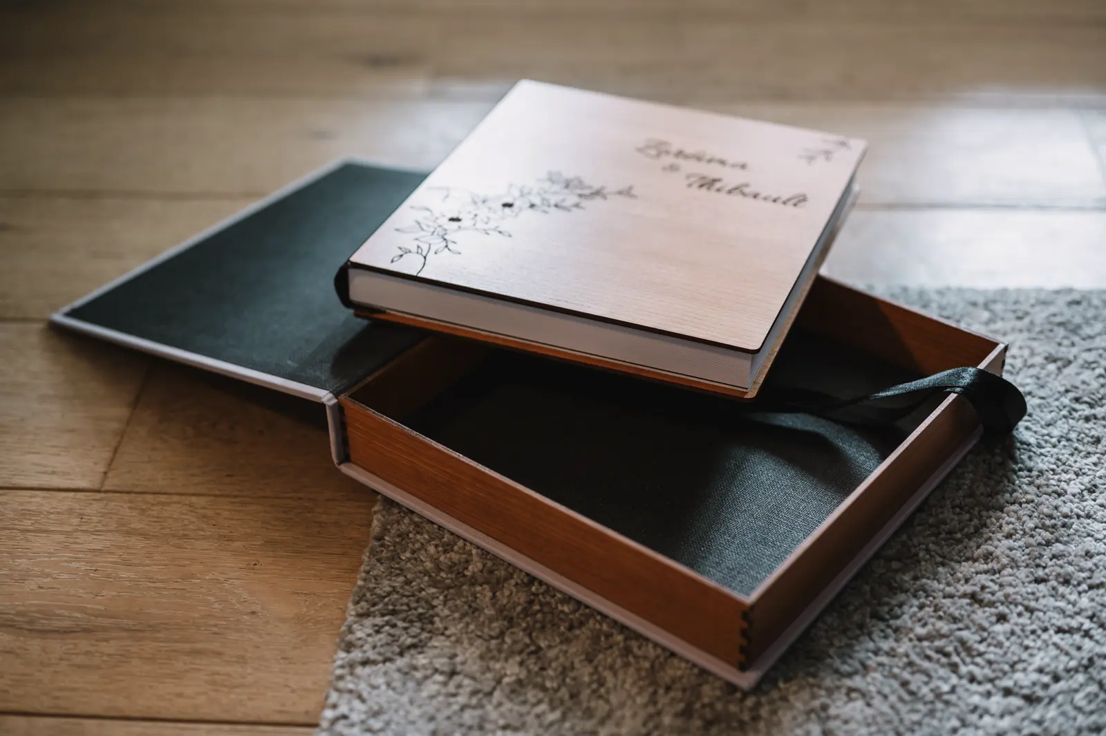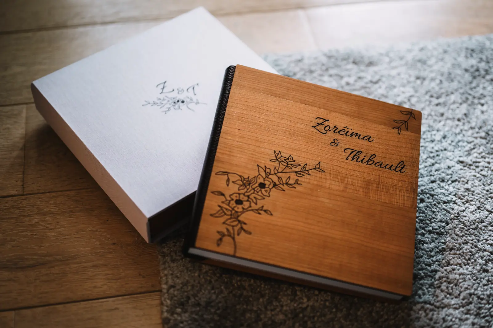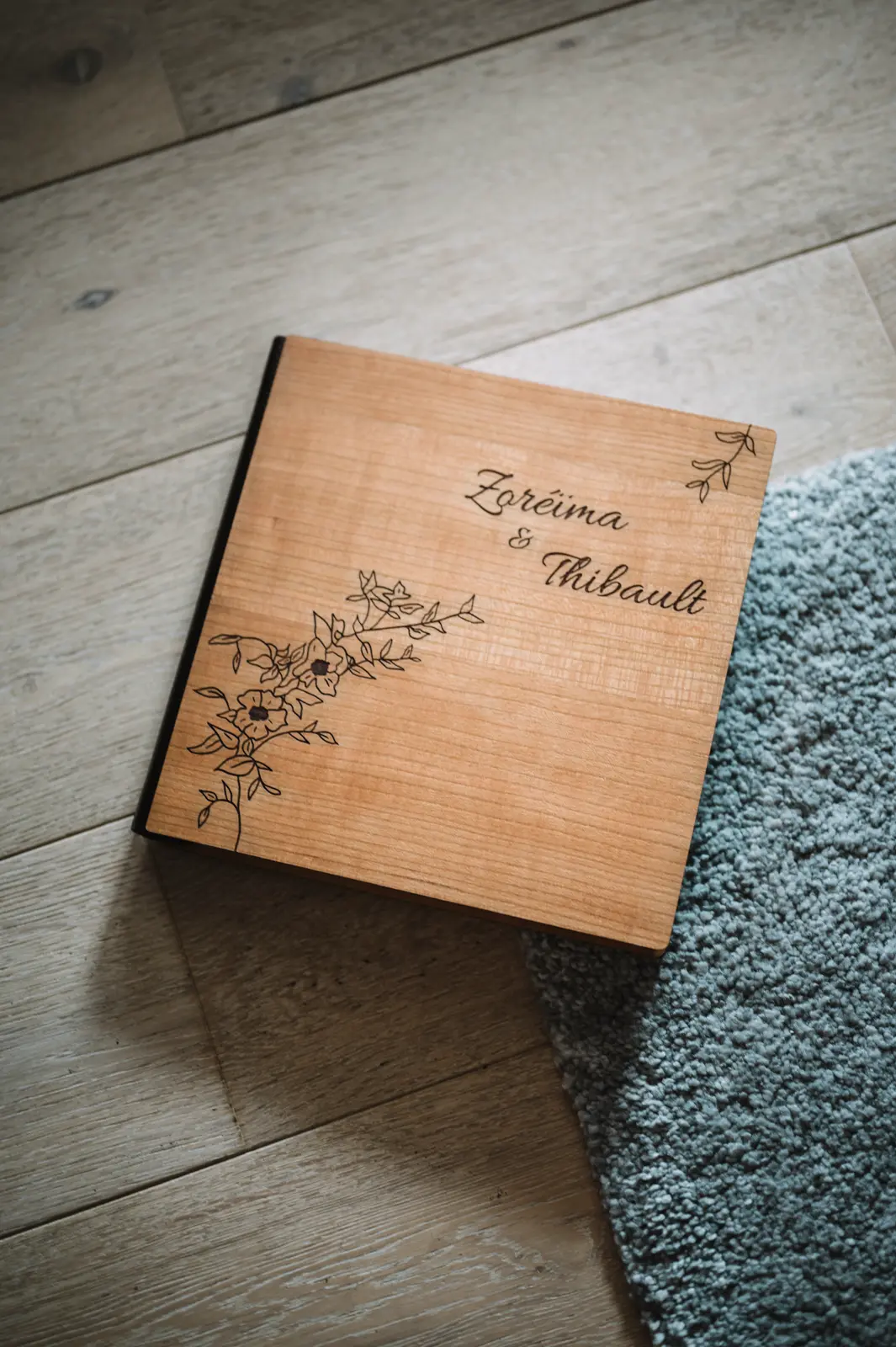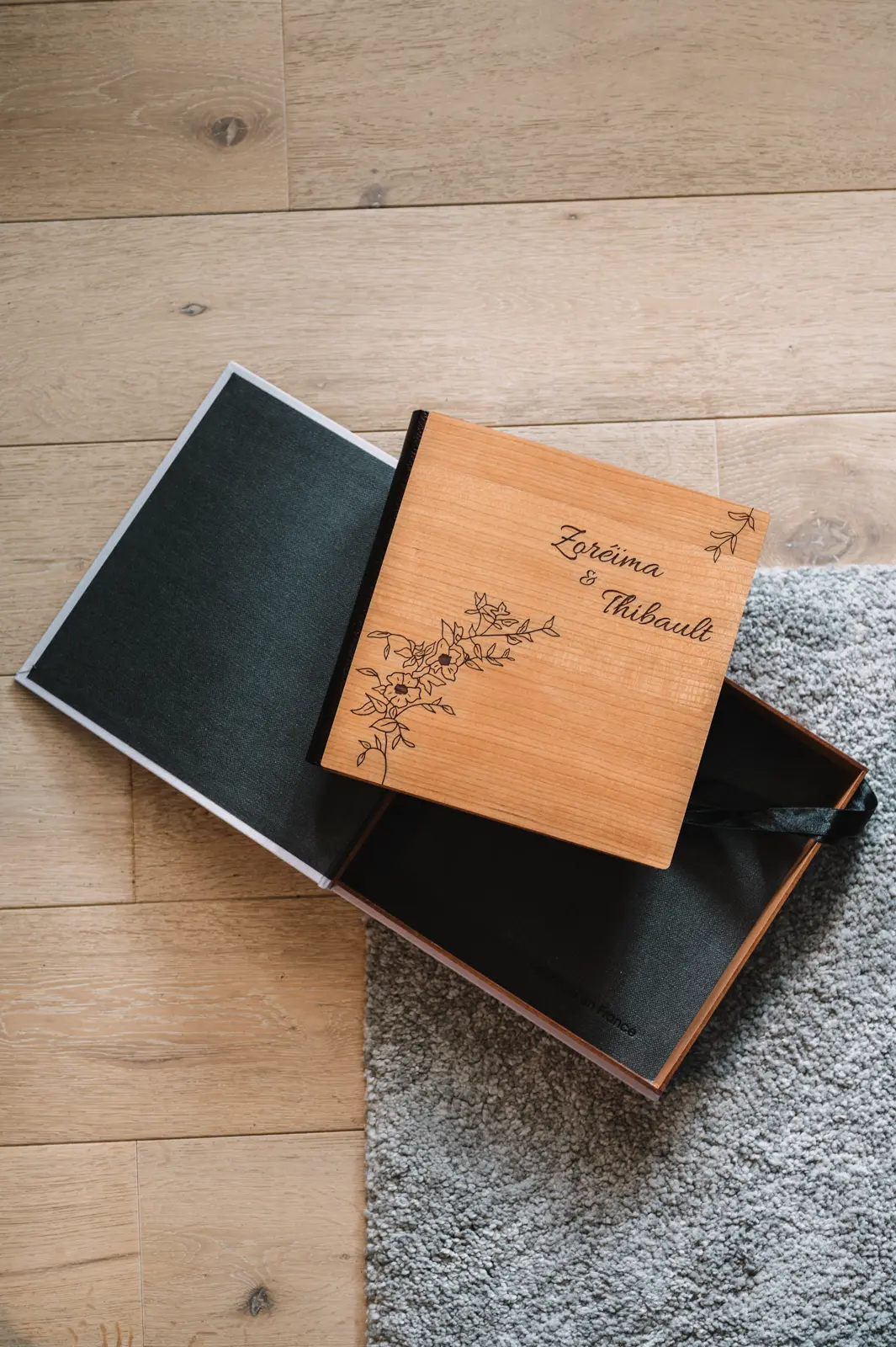 La matérialisation ultime de mon dévouement réside dans la création de souvenirs intemporels, incarnés à travers des livres captivants. Lorsque mes clients me confient la responsabilité de leur narration visuelle, je peux élaborer un reportage empreint d'amour, magnifiquement encapsulé dans un livre à la couverture de bois gravée au laser, ornée des éléments distinctifs de votre papeterie pour une personnalisation maximale. Ces différents livres deviennent également des cadeaux significatifs à offrir à vos proches, une manière de les remercier d'avoir été partie prenante de cette journée exceptionnelle. Mon objectif est de fournir des souvenirs authentiques et durables. Chaque livre de mariage que je crée est conçu avec une attention méticuleuse aux détails.