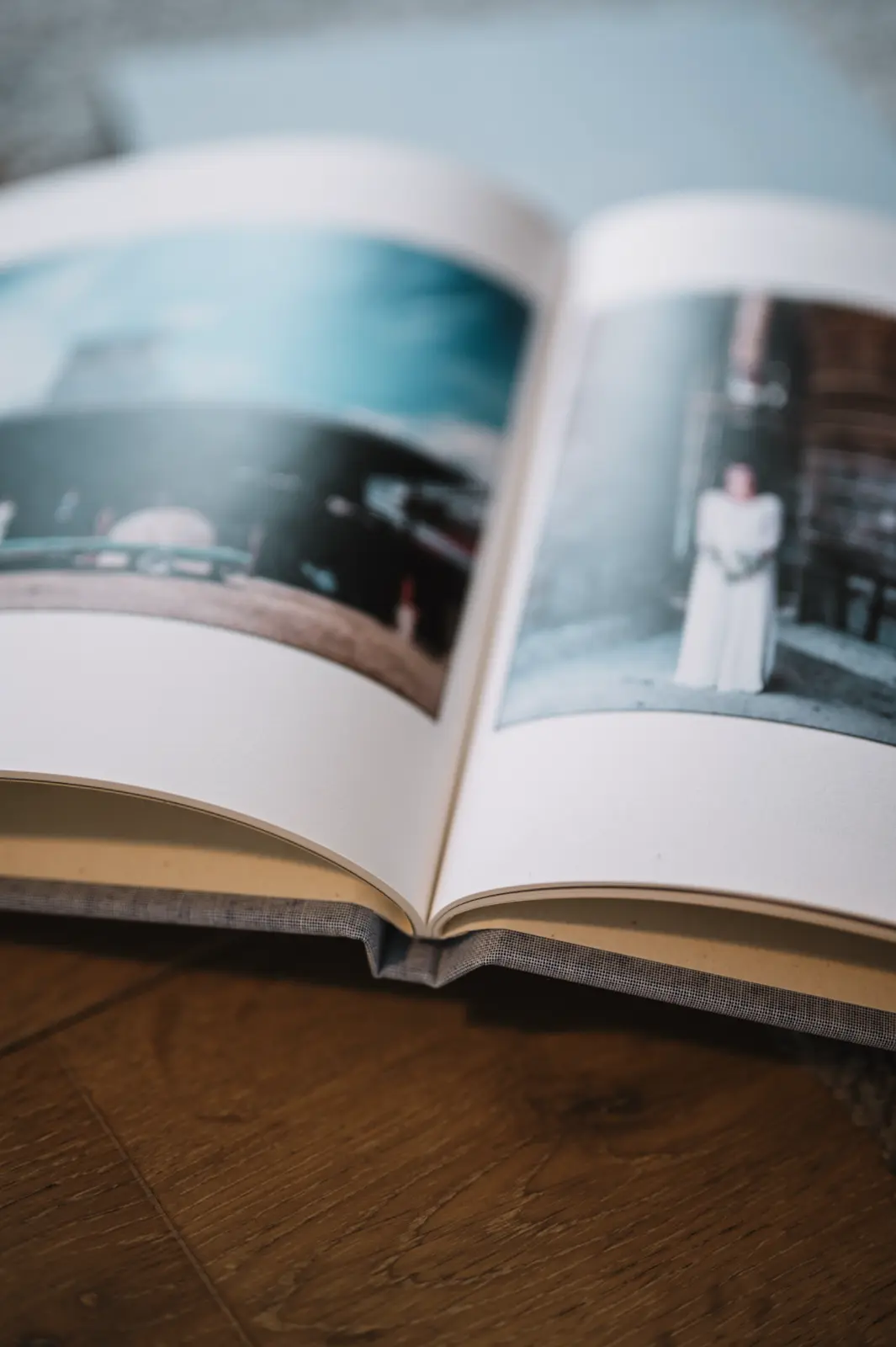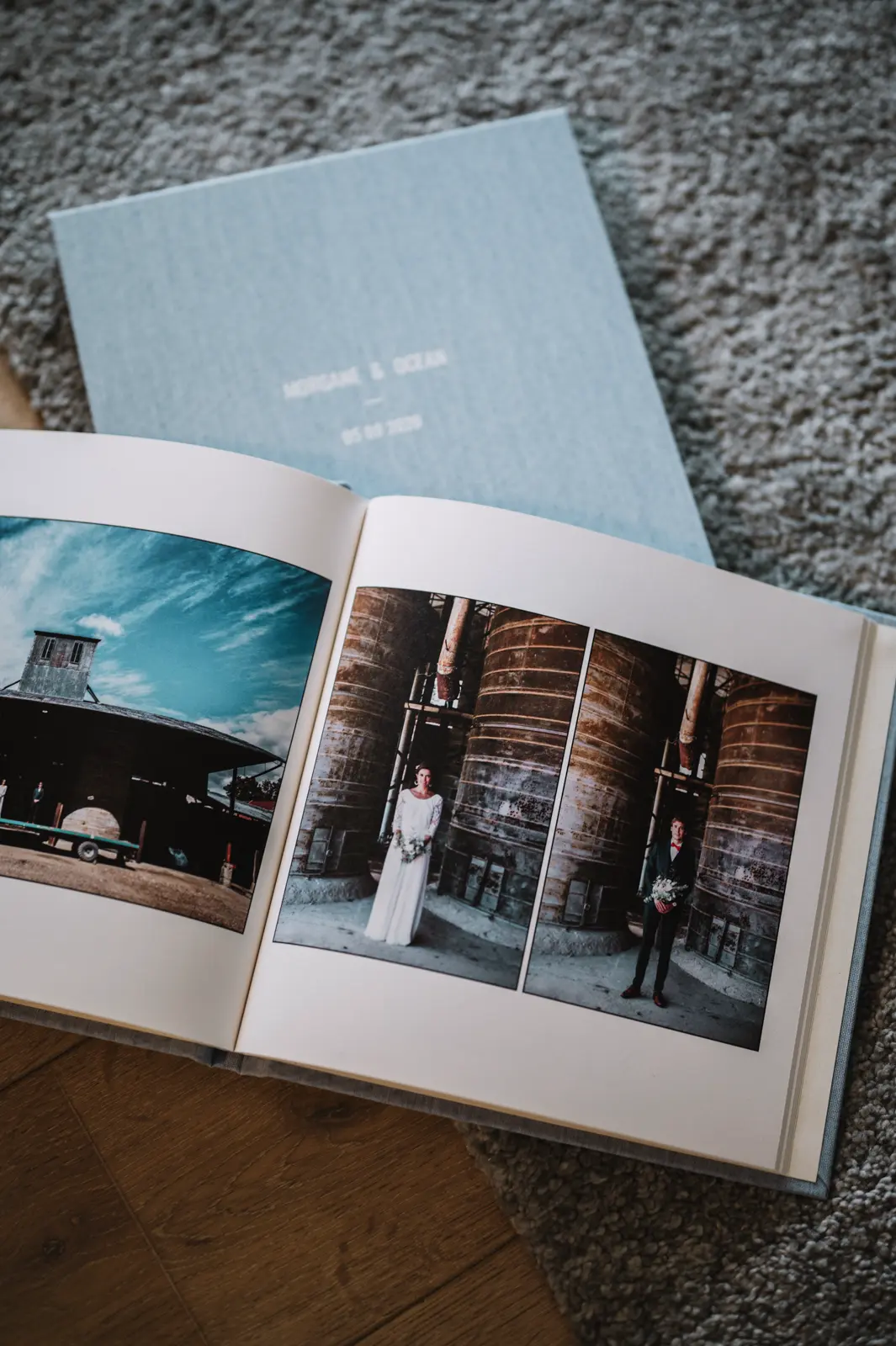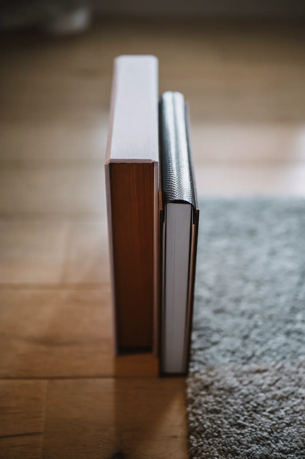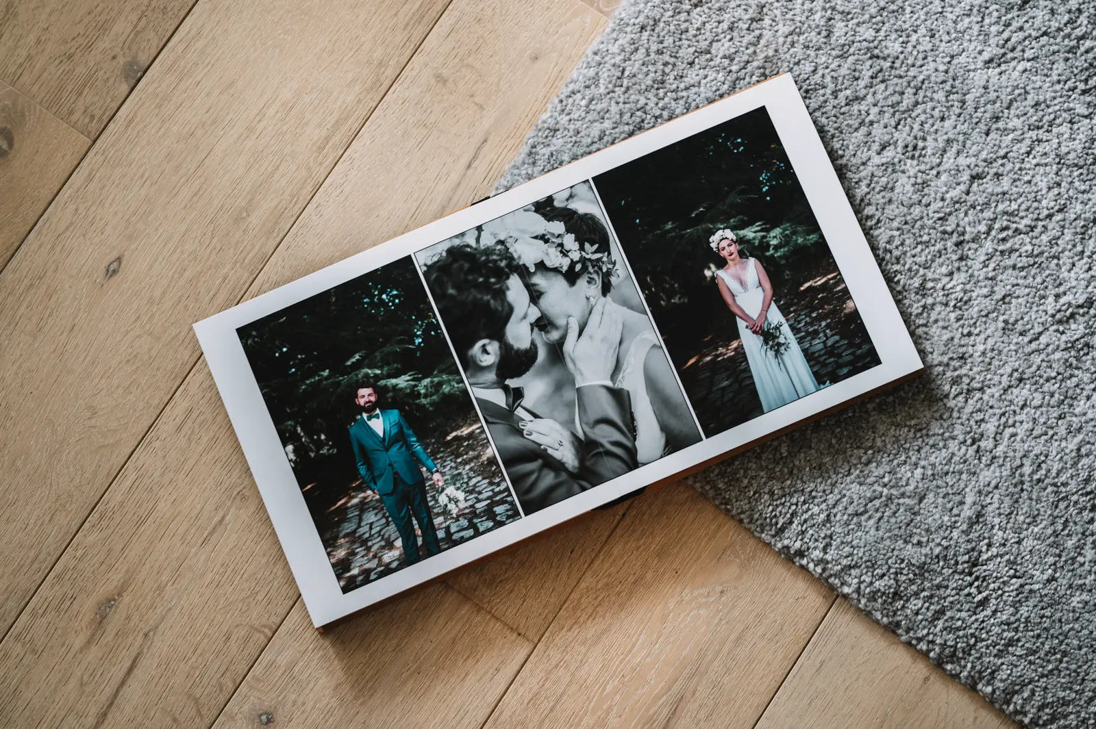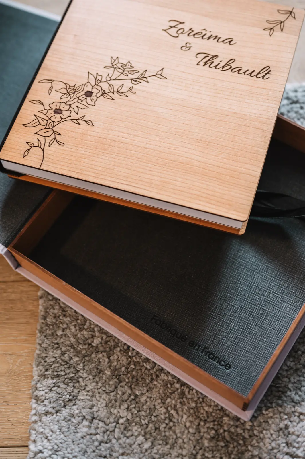 La matérialisation ultime de mon dévouement réside dans la création de souvenirs intemporels, incarnés à travers des livres captivants. Lorsque mes clients me confient la responsabilité de leur narration visuelle, je peux élaborer un reportage empreint d'amour, magnifiquement encapsulé dans un livre à la couverture de bois gravée au laser, ornée des éléments distinctifs de votre papeterie pour une personnalisation maximale. Ces différents livres deviennent également des cadeaux significatifs à offrir à vos proches, une manière de les remercier d'avoir été partie prenante de cette journée exceptionnelle. Mon objectif est de fournir des souvenirs authentiques et durables. Chaque livre de mariage que je crée est conçu avec une attention méticuleuse aux détails.