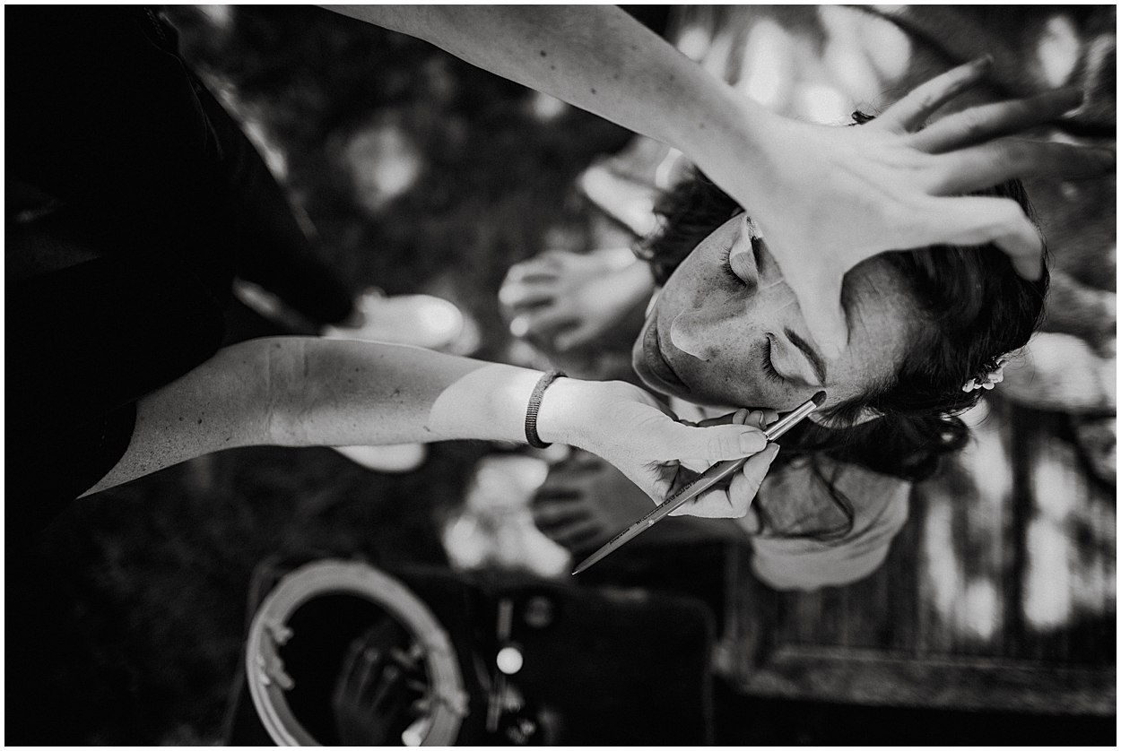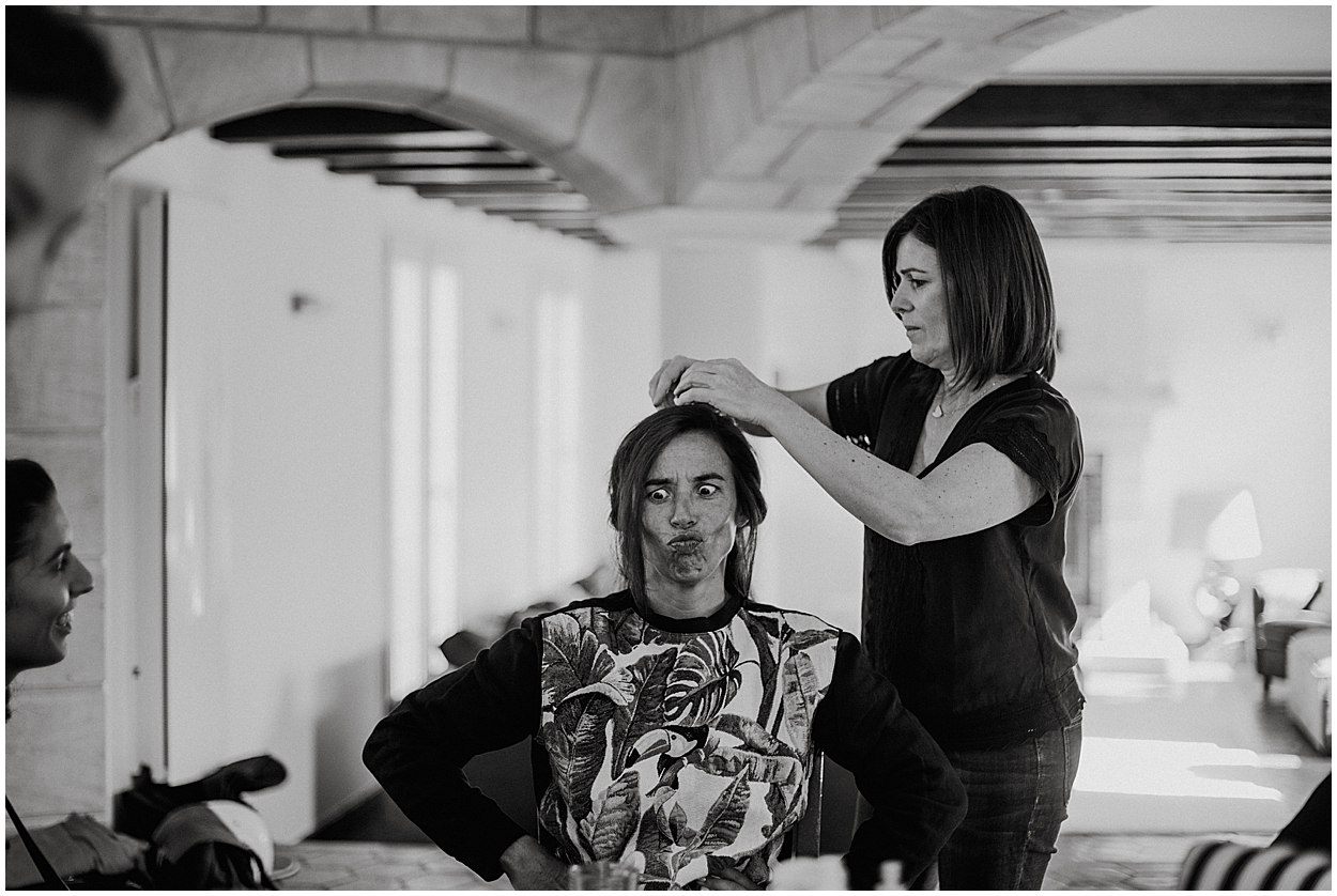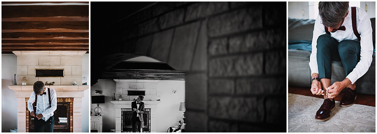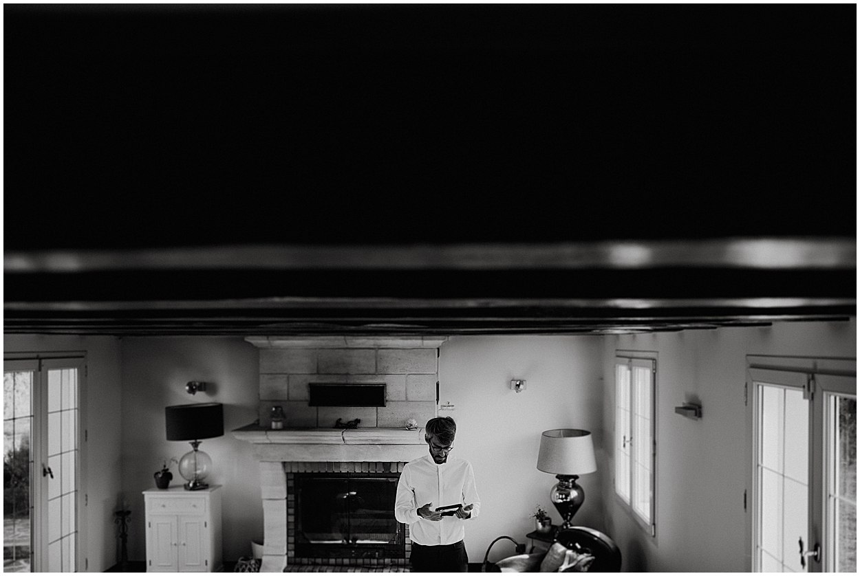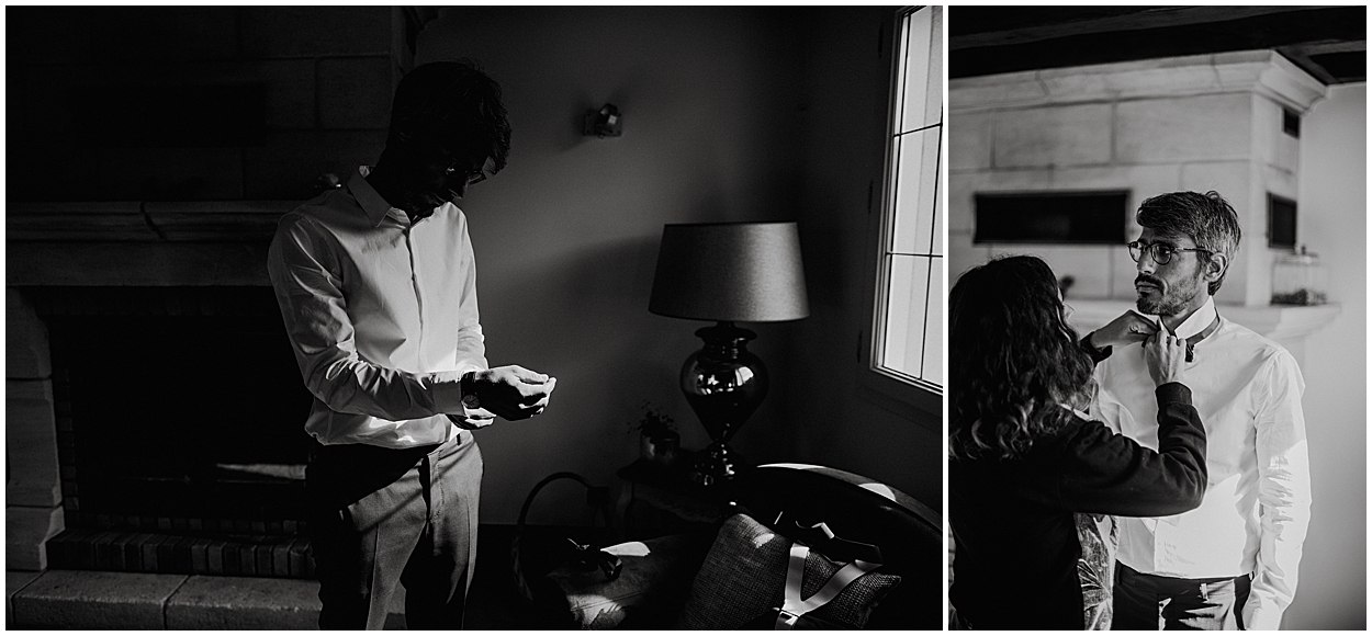 J’ai donc retrouvé Victoire et Olivier non loin de là dans une maison qu’ils avaient loué pour l’occasion. Les préparatifs se sont passés en toute décontraction ! Entre amis et famille, l’ambiance était très agréable ! Tout dans la bonne humeur ! Victoire habillant même Olivier, avec des yeux d’amoureuse conquise, c’était trop beau à voir J