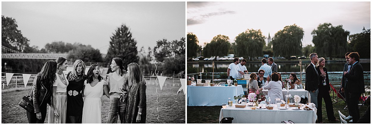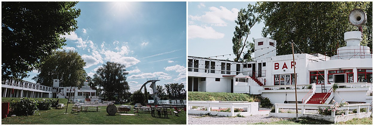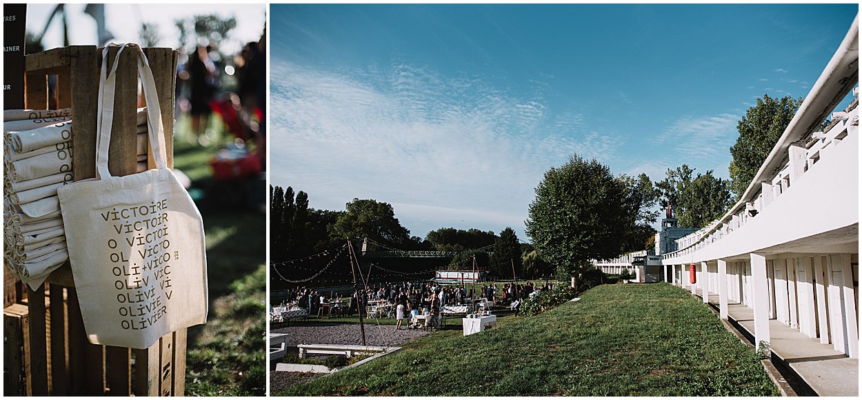Déjà, rien que le lieu du mariage ! Complétement atypique et non loin de Paris, j’ai découvert un endroit charmant en bord d’Oise. Ce fût une piscine des années 1930 où le tout Paris venait se baigner et se reposer. Aujourd’hui le lieu mériterait un coup de fraicheur, mais la déco que Victoire et Olivier ont réalisé a permis de sublimer ce lieu en extérieur.