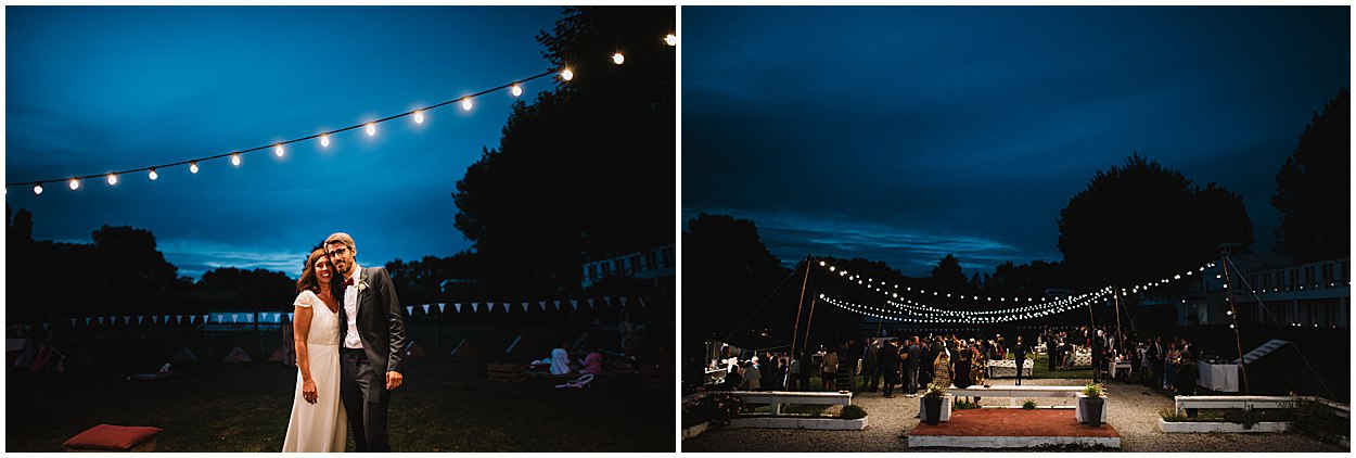 Après la cérémonie, Un joli convoi dans le village et nous nous sommes dirigé vers la plage des Lys Chantilly à pieds. Le cocktail et la soirée se sont passées en extérieur. Les lumières installées ont vraiment permis de mettre une ambiance folle. De plus, le temps a été aussi de la partie, les lumières de fin de journée ont été incroyables. Naturellement, on en a profité pour faire quelques photos.
