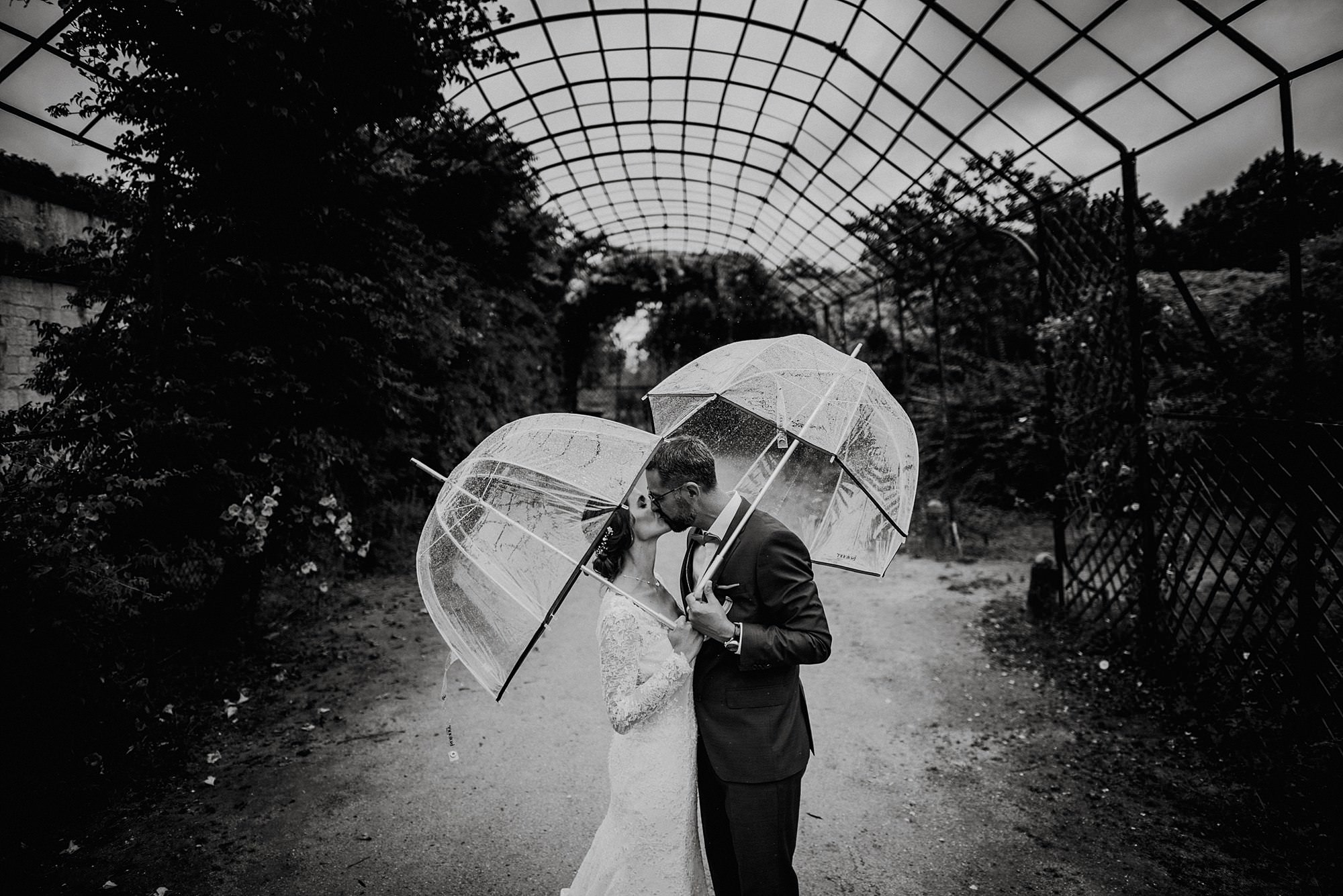 La pluie étant notre camarade de jeu, il a fallu jouer avec elle avec de beaux parapluies que Fabrice a trouvé à la hâte. Les parapluies sont de beaux accessoires qui rendent uniques les photos. Les couples n’aiment pas la pluie, ce que je comprends, mais elle permet aussi d’avoir des photos originales et donc assez unique surtout en saison estivale.