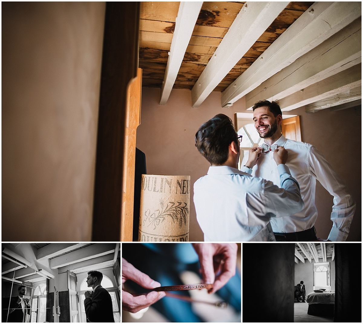 Ils ont choisi un magnifique lieu : un ancien moulin rénové. C’est un lieu intime et un peu caché mais à mon grand étonnement qui se découvre sur des grands espaces à proximité. Un lieu à l’image de leur couple je dois dire : réservé et généreux à la fois.