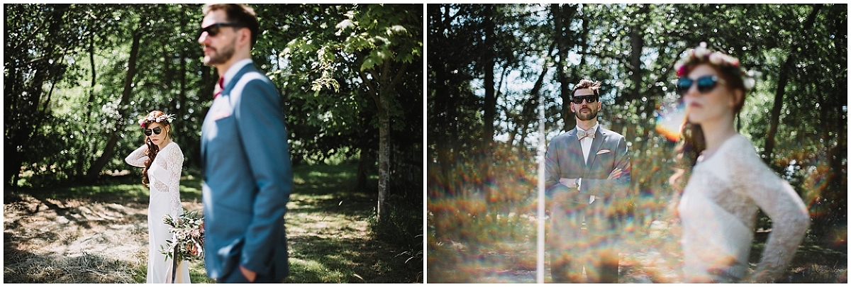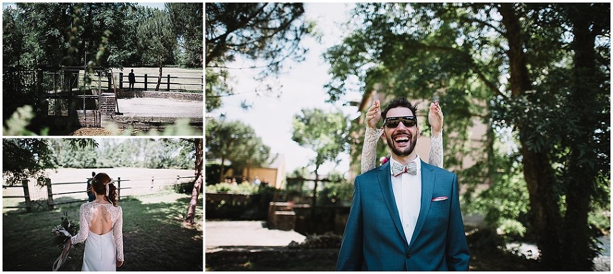 La séance couple que nous avons pu faire a été aussi un agréable partage. Comme la propriété du Moulin réserve de beaux espaces naturels, nous avons fait les photos autour du Moulin. Nous avons pris notre temps pour faire le « first look » et la séance juste après. J’aime beaucoup faire la séance juste après le first look car le couple est dans une sorte de cocon, ils sont heureux de se retrouver et de passer un moment privilégié ensemble avant les cérémonies.