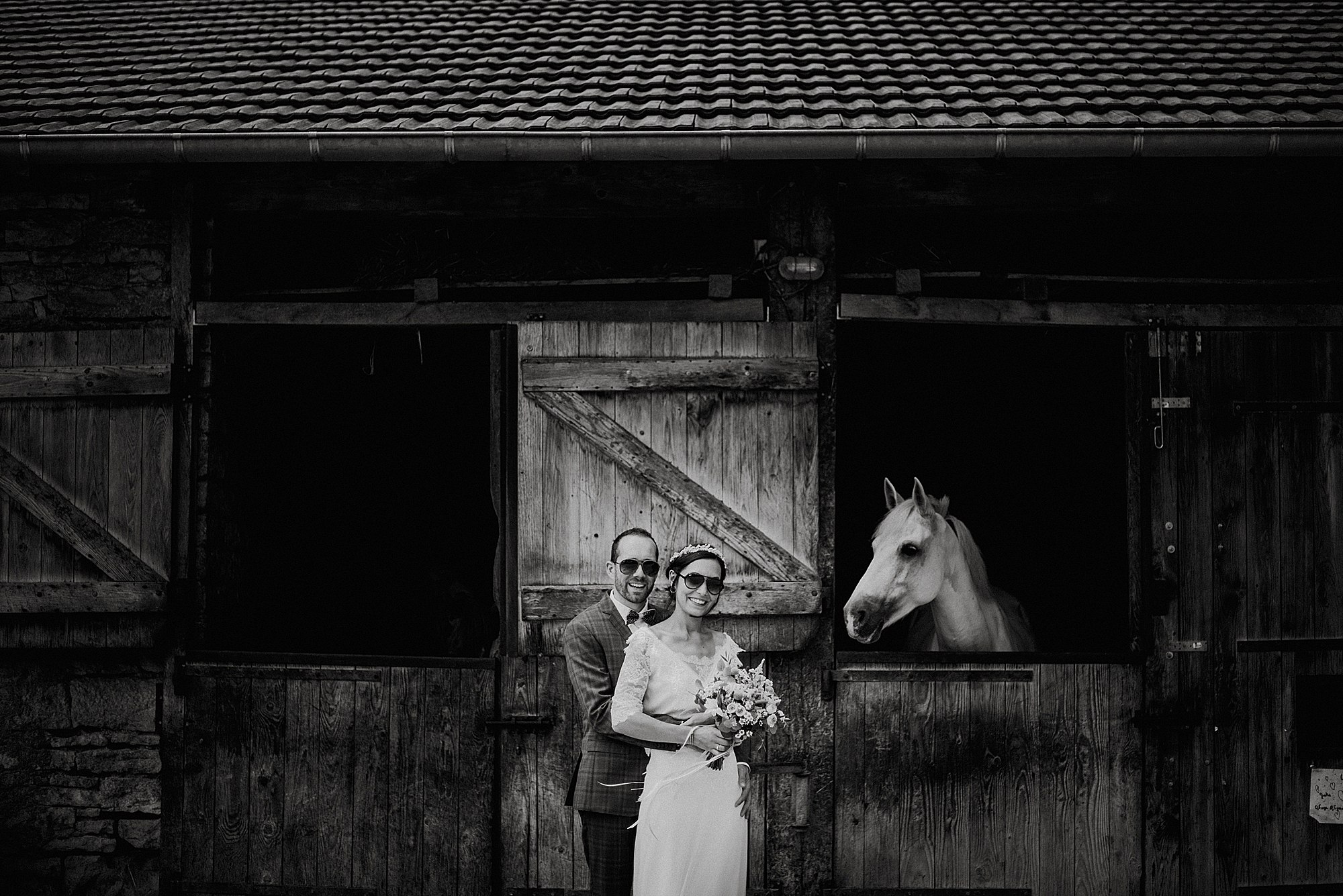 A l’arrivée de Fabien, nous avons profité de l’environnement du Prieuré de Bonvaux pour faire les photos de couple. Le Prieuré étant aussi un centre équestre, Pauline étant cavalière, le choix de parcourir les écuries et d’être avec les chevaux étaient une évidence.