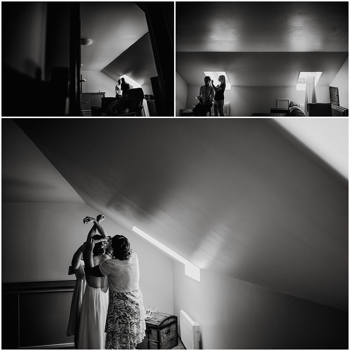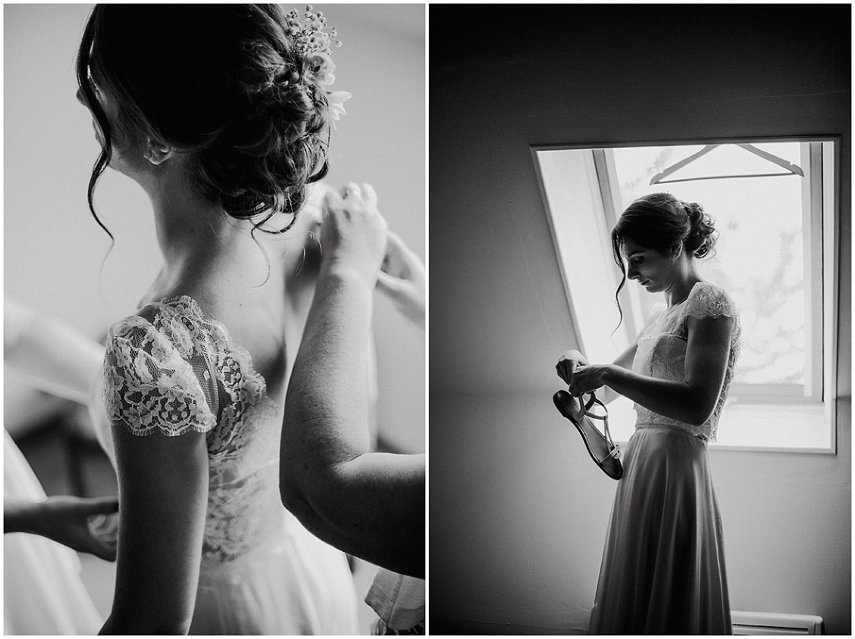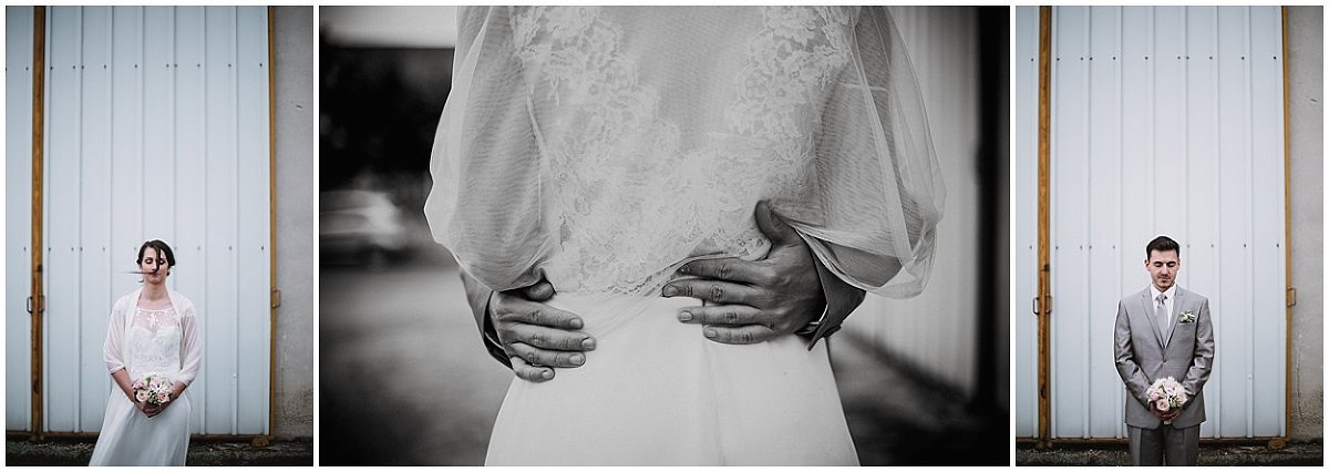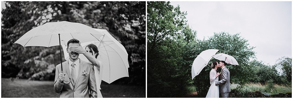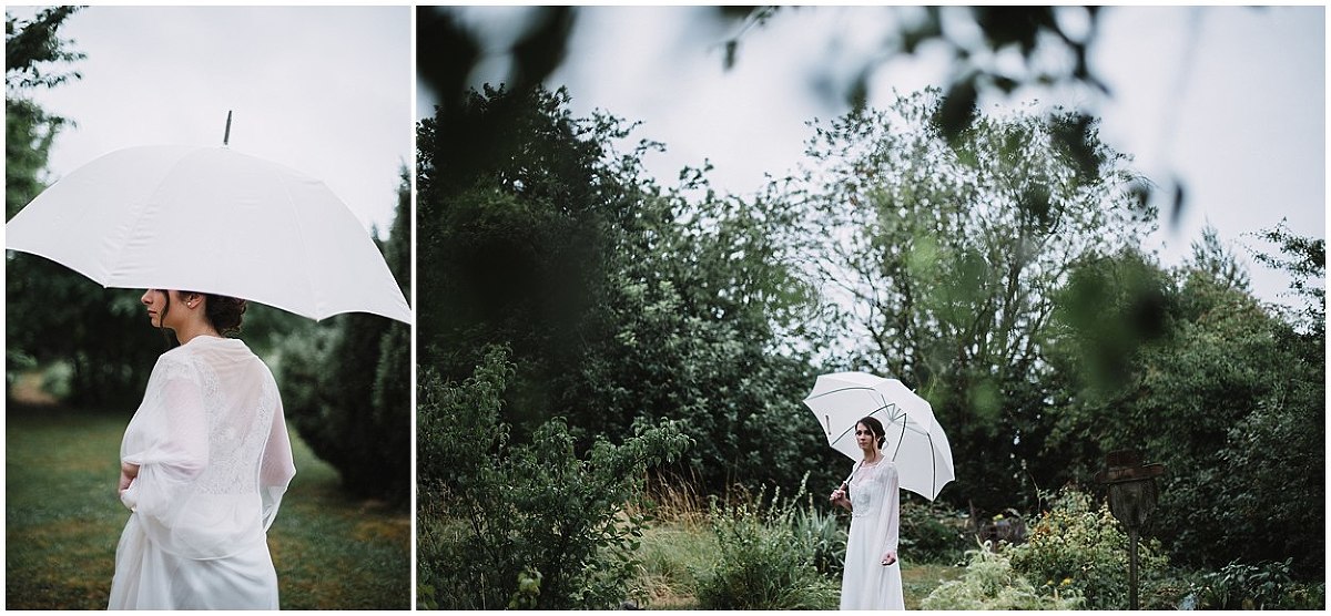 La veille j’avais repéré quelques lieux pour faire les photos de couple en extérieur. On a profité d’une demie heure de calme pour allez faire les photos. Le first look a été fait sous les parapluies. Au final cela donne des photos que j’aime beaucoup ! Le parapluie est un accessoire que je trouve très esthétique ! Malgré tout il est mieux dans le coffre de la voiture ! Mais c’est comme ça, une journée de pluie n’est pas simple à gérer, mais si on passe au-delà, on peut avoir des images bien sympathiques et uniques !