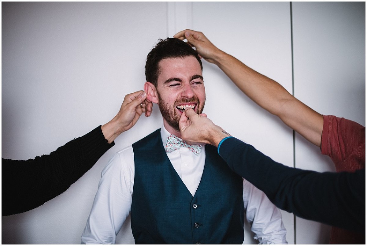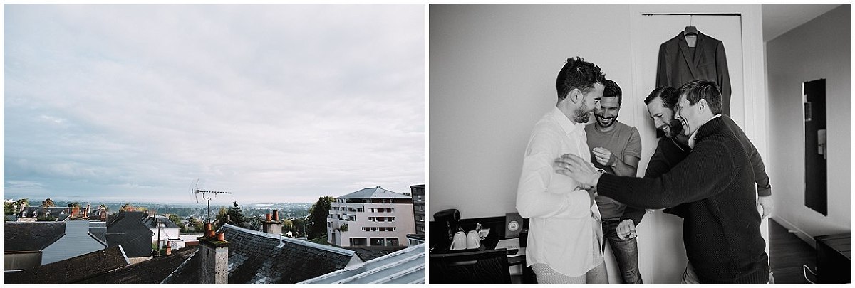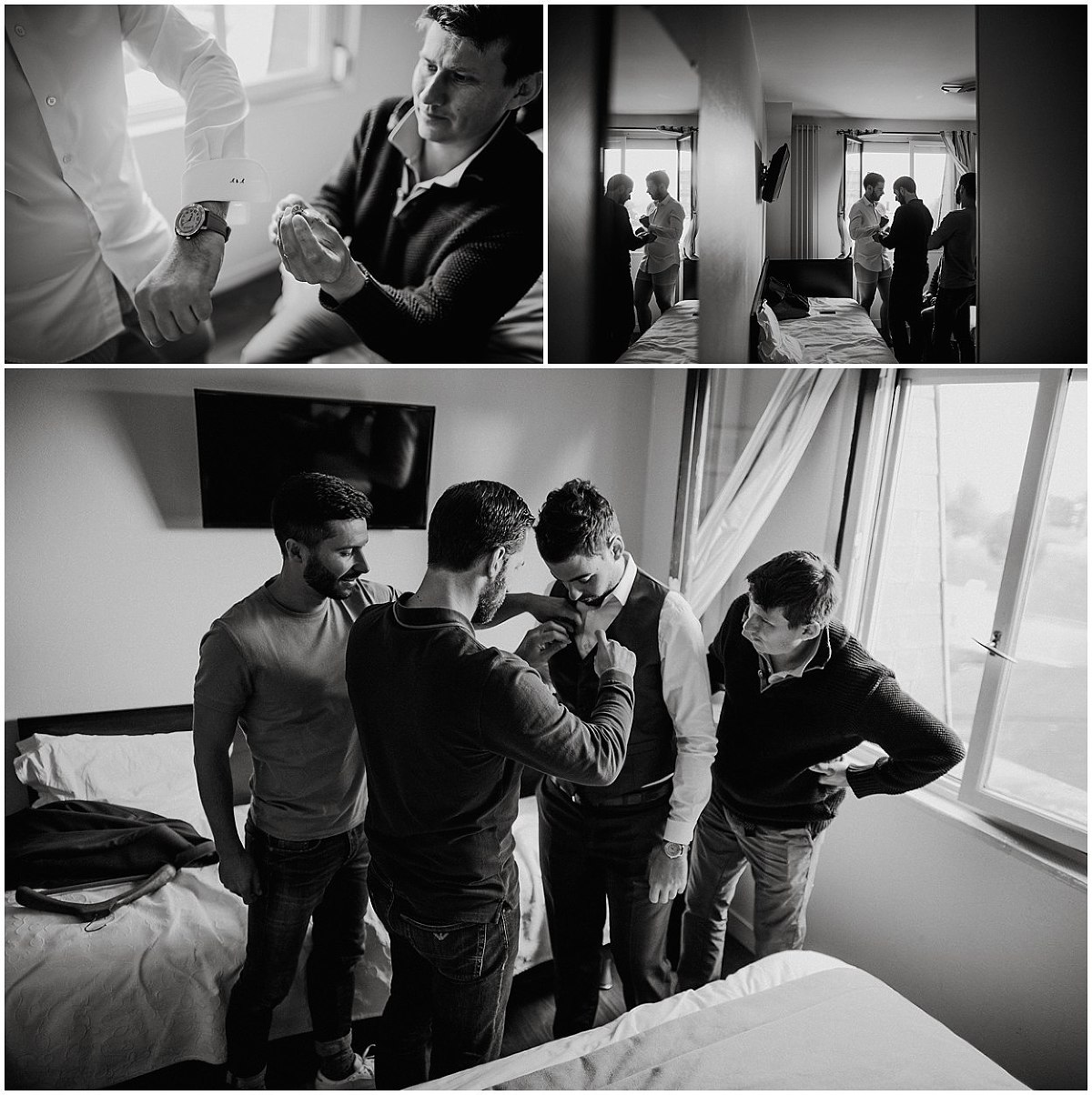 Le lendemain j’ai retrouvé Antonin à l’hôtel pour sa préparation. Il était avec ses amis et l’ambiance était plutôt bonne enfant ! Ce qui est toujours agréable pour ce moment !
