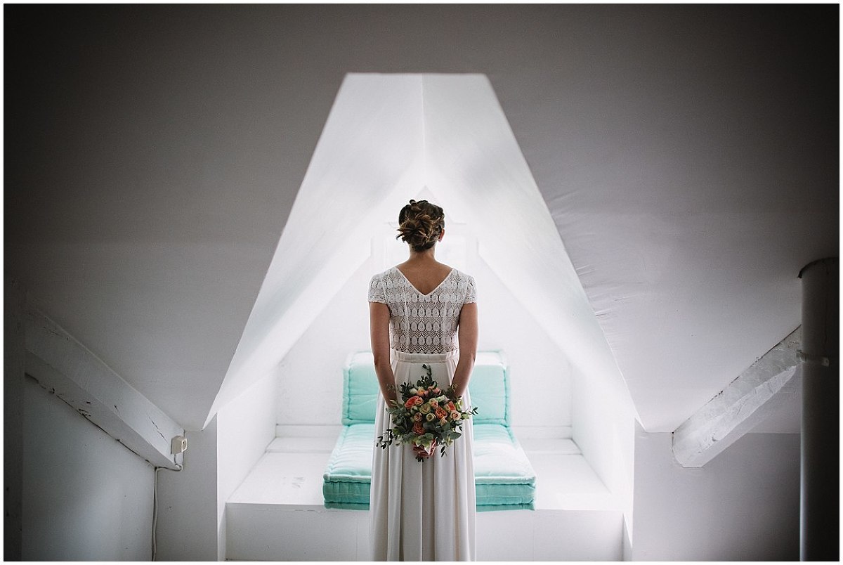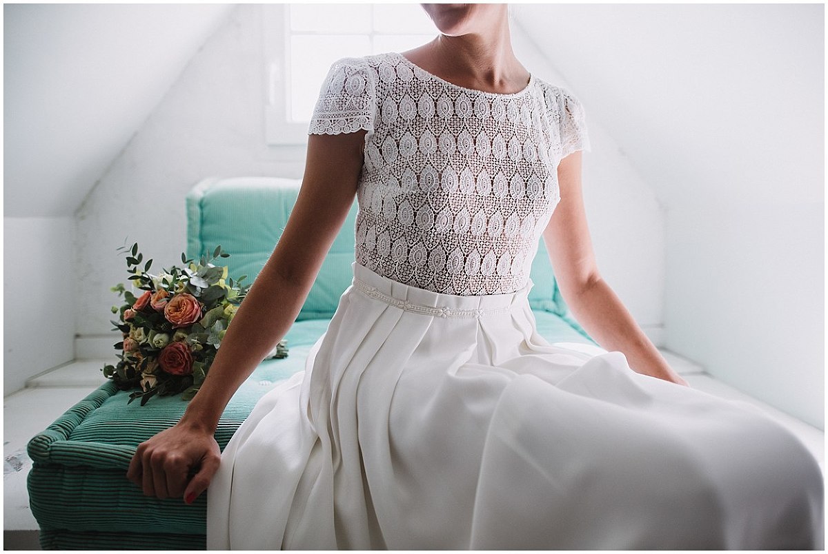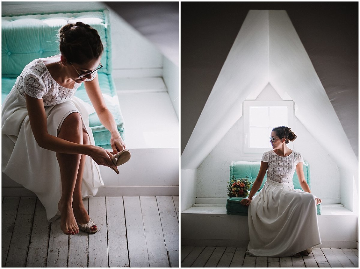 J’ai ensuite retrouvé Amélie dans la maison familiale. Sur mes conseils, elle a imaginé un lieu intime et chaleureux pour ses préparatifs : un joli grenier qu’elle a soigneusement agencé pour que l’on puisse faire de supers photos. Ce moment avec elle restera un de mes meilleurs souvenirs de préparatifs de cette saison 2017. J’ai franchement adoré, de plus j’ai adoré la robe Lorafolk d’Amélie. Un pur moment !