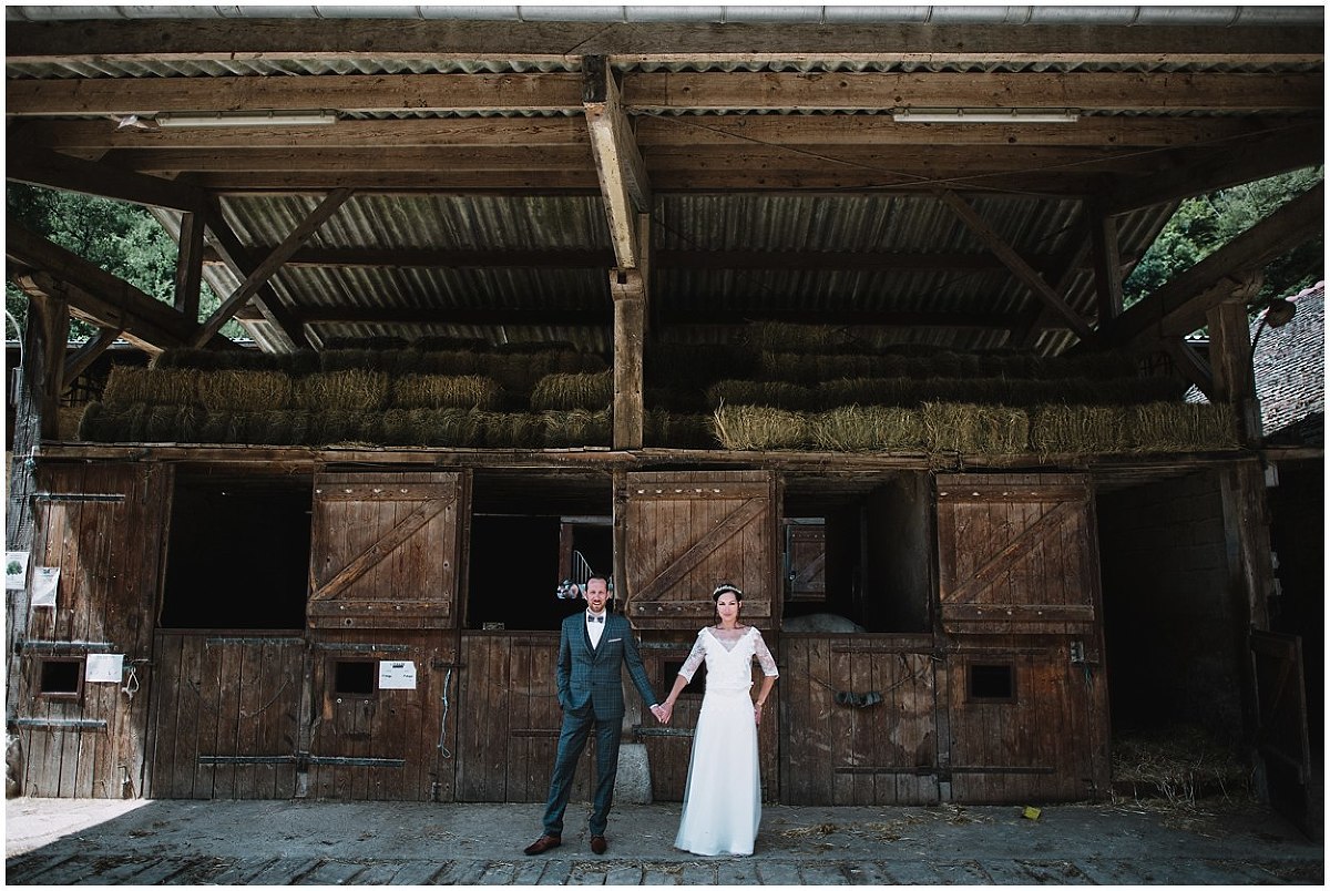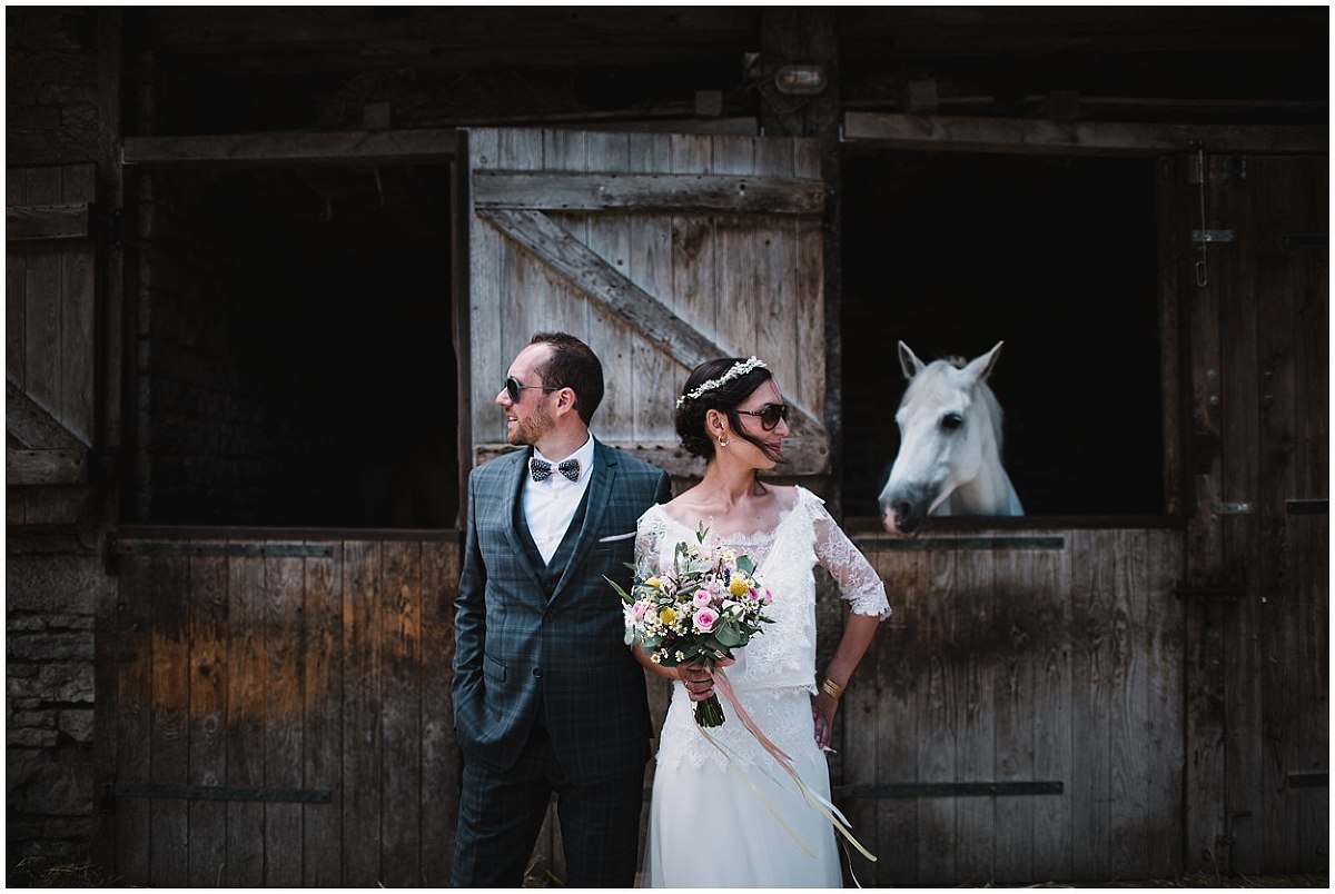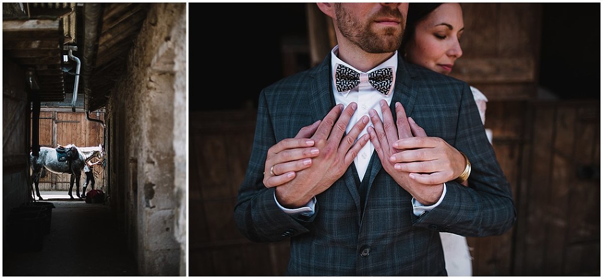 A l’arrivée de Fabien, nous avons profité de l’environnement du Prieuré de Bonvaux pour faire les photos de couple. Le Prieuré étant aussi un centre équestre, Pauline étant cavalière, le choix de parcourir les écuries et d’être avec les chevaux étaient une évidence.