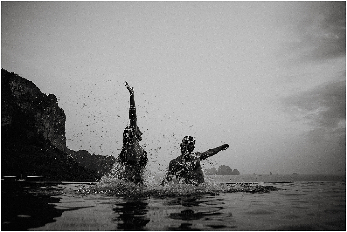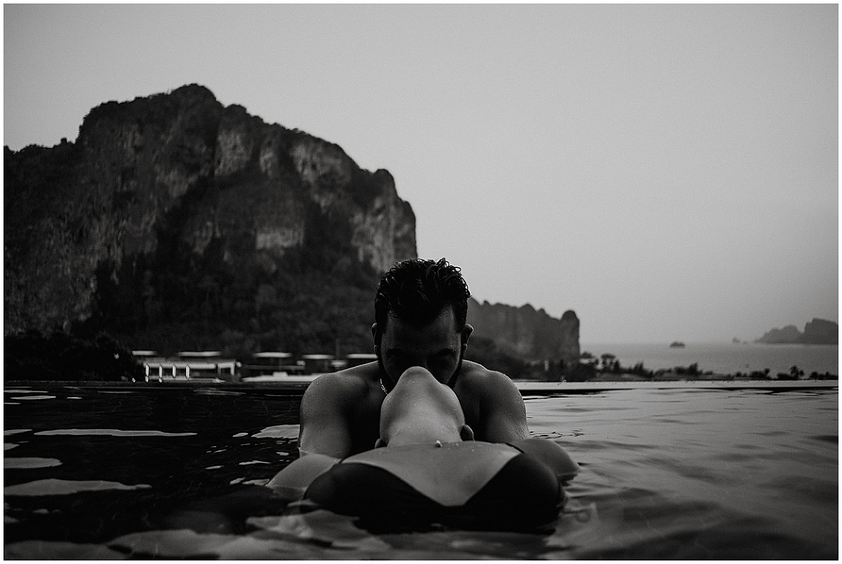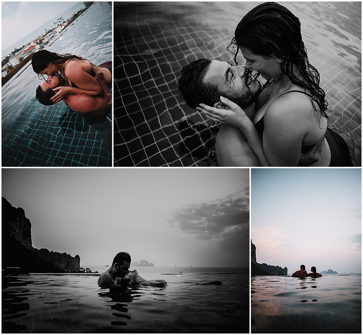 Notre périple en mer se terminant, le soleil commençant à nous quitter, on décide de nous rendre à leur hôtel qui domine la baie de Ao Nang avec une jolie piscine. C’est là que nous terminerons la séance avec cette jolie vue mais aussi en profitant de cette superbe piscine et des derniers rayons de soleil.